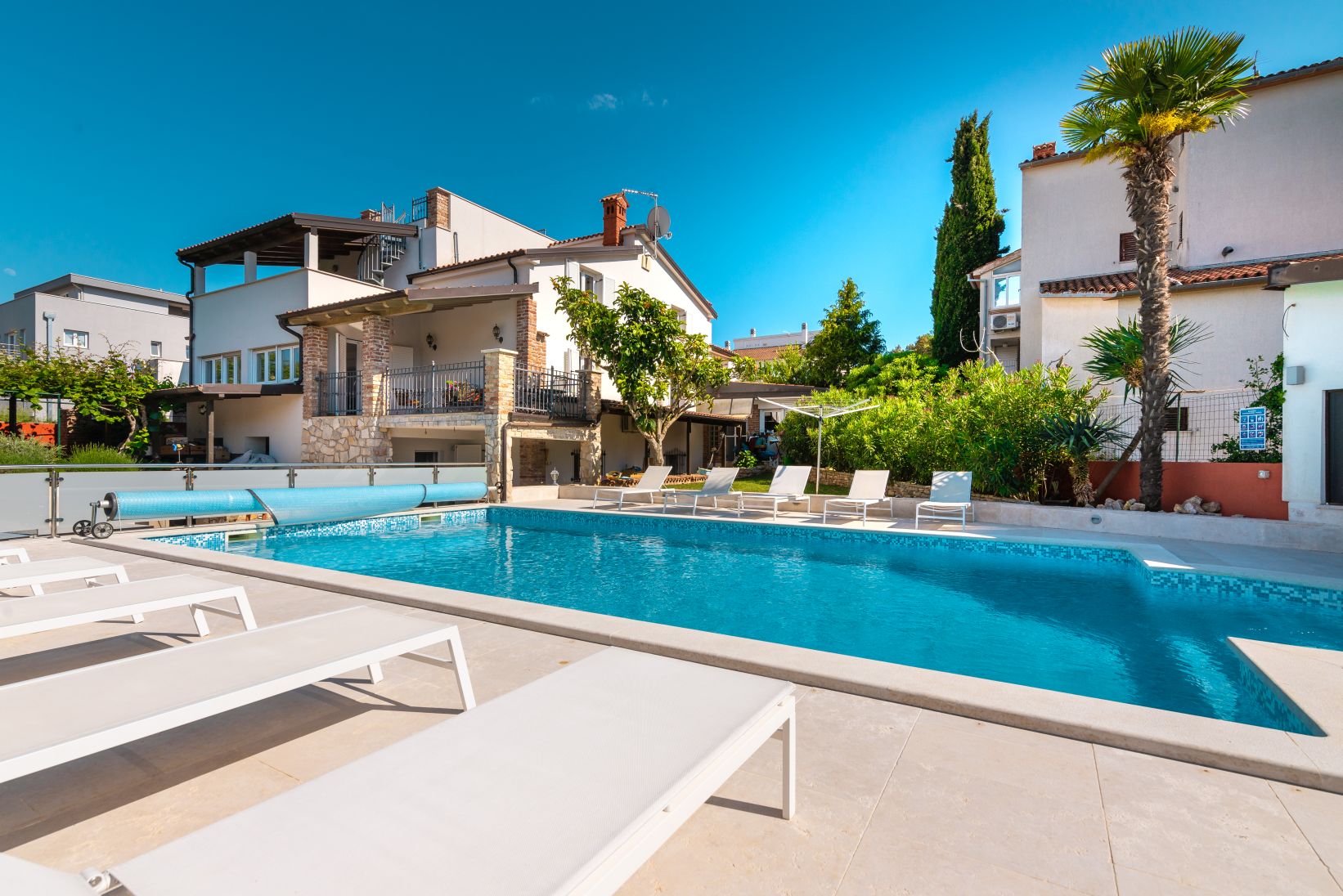 A 10mx5m size pool is heated when necessary, which is rare because it is mostly sunny.