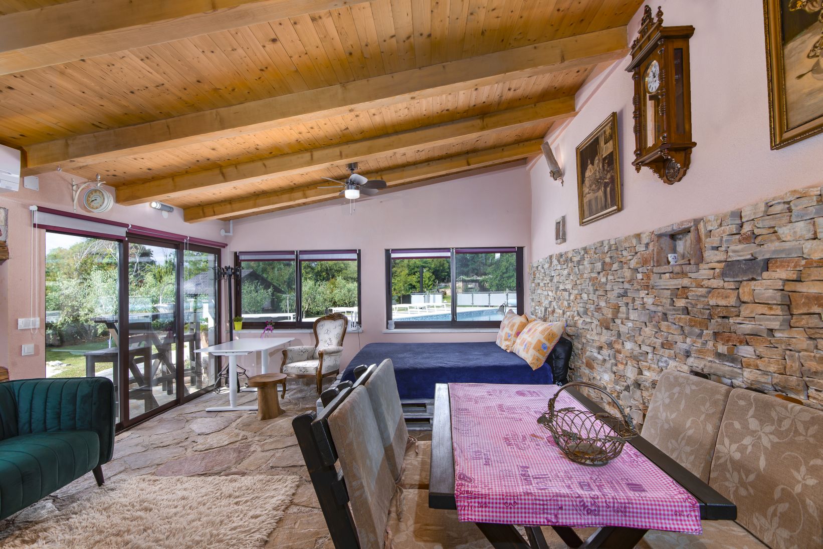 Our guests can choose between two apartments and a tavern next to the pool.