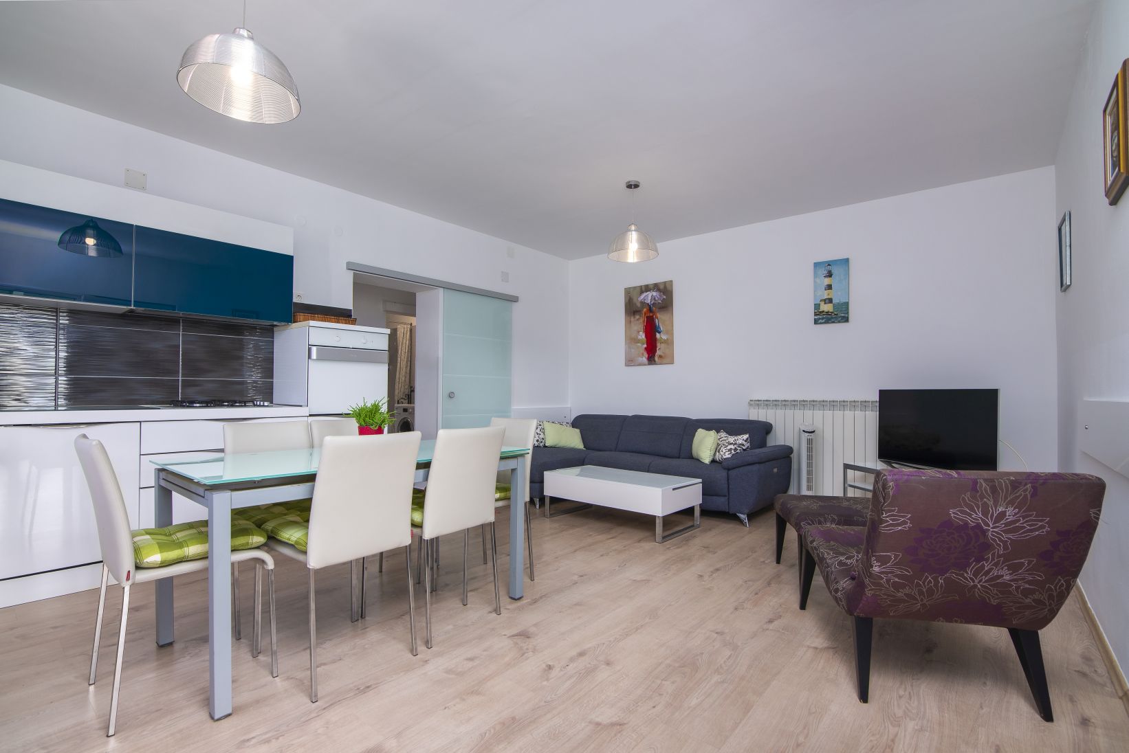 Both apartments have 100m2 of space and can host up to 6 people. There are 3 bedrooms, 2 bathrooms, a kitchen, living room and a terrace available in each.